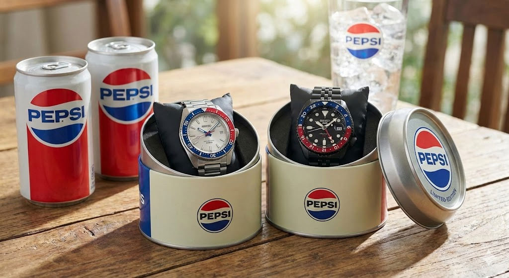 The Seiko 5 Sports x Pepsi® Limited Edition collection marks a historic milestone as the first officially licensed collaboration between these two cultural icons, finally formalizing the legendary “Pepsi” nickname long cherished by watch enthusiasts. This exclusive series features two distinct models, each limited to just 7,000 pieces worldwide and presented in a unique collector’s tin designed to mimic a classic Pepsi soda can.